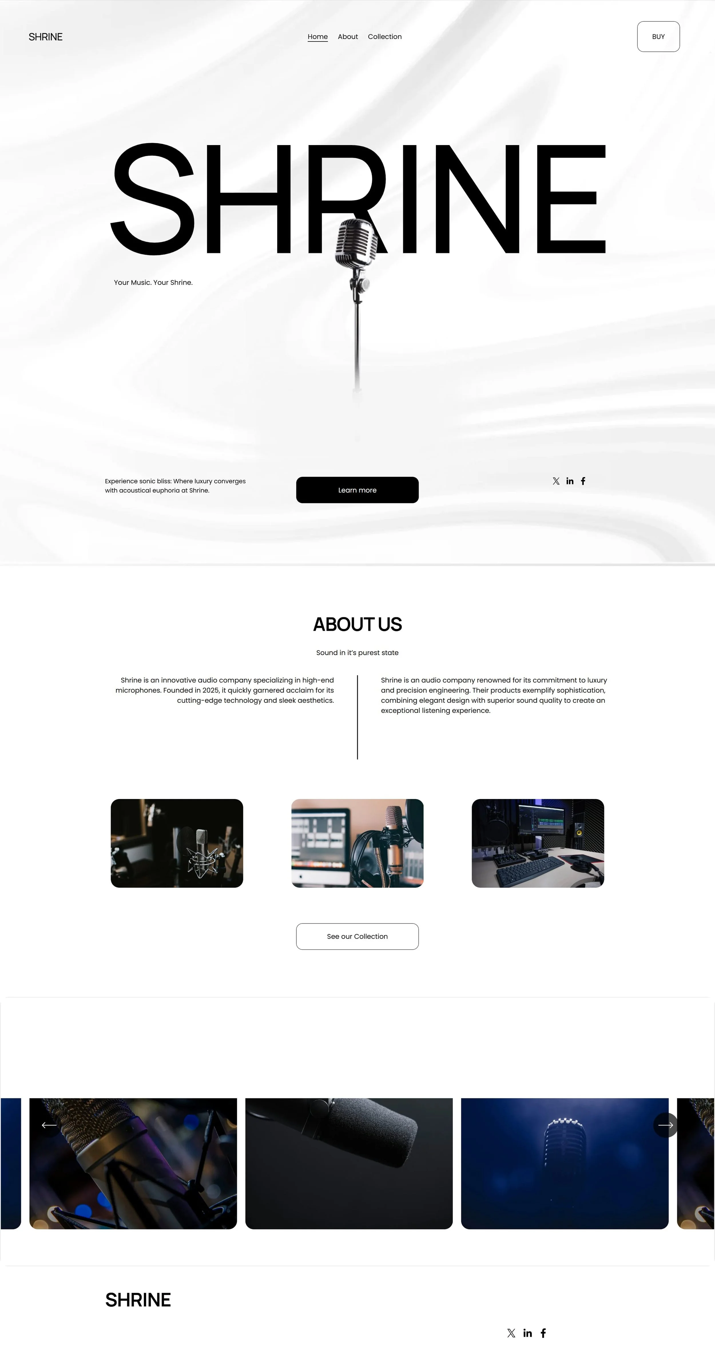 Shrine is a next-generation audio company known for its high-performance microphones and refined aesthetic. Their team wanted a website that would reflect the elegance and clarity of their products, while also improving engagement and positioning them as a top-tier brand in the competitive audio tech space.