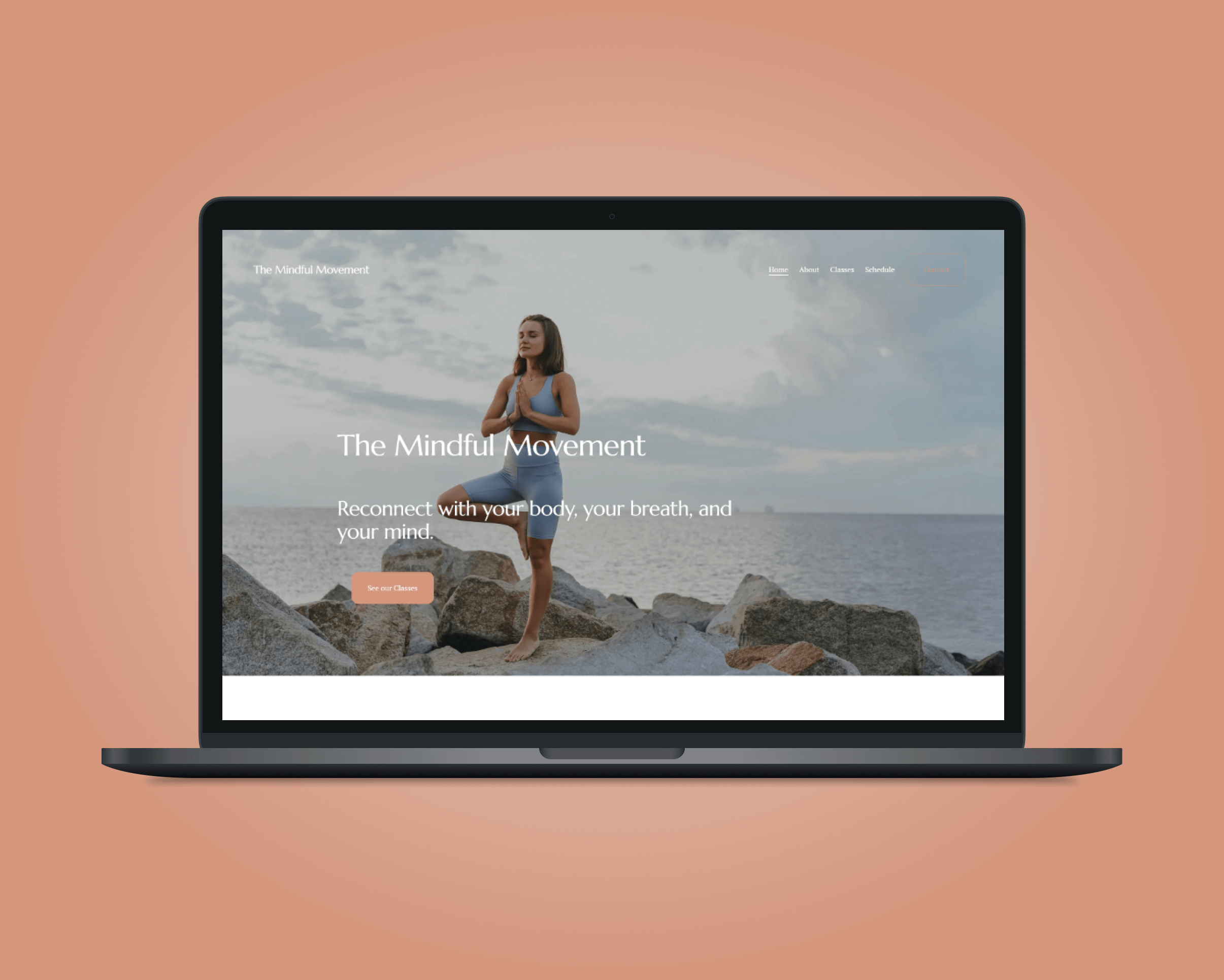 Rachel, a certified yoga instructor and founder of The Mindful Movement, approached me with a clear vision: to create a peaceful, inviting website that reflected the flow and grounding nature of her ocean-side yoga practice.